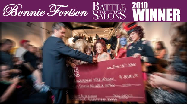 Atomic Kitten beats rival by a hair for best salon title It came down to one point. That's all that separated the two Bakersfield salons vying for top honors at the Battle of the Salons Thursday night. In the closest battle in the salon competition's history, Atomic Kitten was named Bakersfield's top salon in an epic battle paying tribute to the Beatles. Although the retro salon walked away with the $2,000 prize, both Atomic Kitten and fellow finalist Rendezvous Salon received one ticket for a stylist to attend the Step Outside the Box! two-day educational retreat in Paso Robles on June 27 and 28. Those with runway seats also lucked out receiving styling products courtesy of Osmo Essence and L.A. Shear. But the real prize of being in the audience was seeing the spectacular battle between two of the city's most creative -- if not most creative -- salons. Both Atomic Kitten and Rendezvous were well-represented in the packed audience at Metro Galleries. The show's hosts -- organizer Sean Faries and event producer Brandie Coffman -- fanned the flames of rivalry as each contingent showed vocal support for their salons. The competition truly began with an appearance by the Beatles, Atomic Kitten style. Their own rocker version of the Fab Four headed down the stairs, kicking off the runway presentation. A snazzy Sgt. Pepper with fringed epaulets and lights in her hair was the first look in a series of bold and well-styled designs. After all eight models had walked, the style team came out to talk about the looks, explaining each stylist had started with a song and then found a model and a look that worked it best. (One model who stood out was a long-haired hippie who came out to "Come Together"; the same model made quite an impression last week walking for Curl Up & Dye as their zodiac Leo.) Before the competition, salon co-owner Ramona Potts said that she initially had reservations about the concept for "Blackbird" (a ballerina dancing down the runway to the ballad) until she saw the model walk during the casting call on Monday and "she killed it." The model's styling was equally bold: a stark yellow face and elaborate black-feathered headpiece into which her hair was weaved. A judge, who said she gave the blackbird look a perfect score, told the team she "had never seen this much attention to detail before." Along with detail, the runway competition was impressive due to the models' performances. With an extra 80 points on the line per look and eight models each (instead of the previous five per battle), each woman (and two men) sold the styles inspired by the Beatles. Among the standouts was Atomic Kitten's harem girl, who was carried and placed at the start of the runway, which she danced down to "Within You, Without You" (although her face reminded me more of Eleanor Bron in the Beatles' film "Help!"). She drove the crowd wild while throwing down some mudras (hand movements) as she posed for the judges. Rendezvous' model for "Can't Buy Me Love" also rocked the runway with a supersized ring, jewels and money in her hair. She played along with the song, shaking her head and wagging her finger along with the song's "no, no, no, noooo!," tore (fake) money in front of the judges and pulled audience members up to dance. At the end of Rendezvous' showing, the other models pulled up audience members, creating a spontaneous dance party (except for their failed attempt to get my reluctant co-worker out of her seat). Anticipation was high for the results, given the excellent showing by both salons. The room burst into applause for Atomic Kitten, as I suspect it would have for Rendezvous as well based on the vocal supporters and the alcohol consumed at the event. The party carried over to the Padre Hotel's Prospect Lounge, where all the talented stylists and models mingled with their former competitors, loyal fans and the usual crowd that sticks to the downtown spot like flypaper. View Battle Of The Salons Photo Gallery Here |